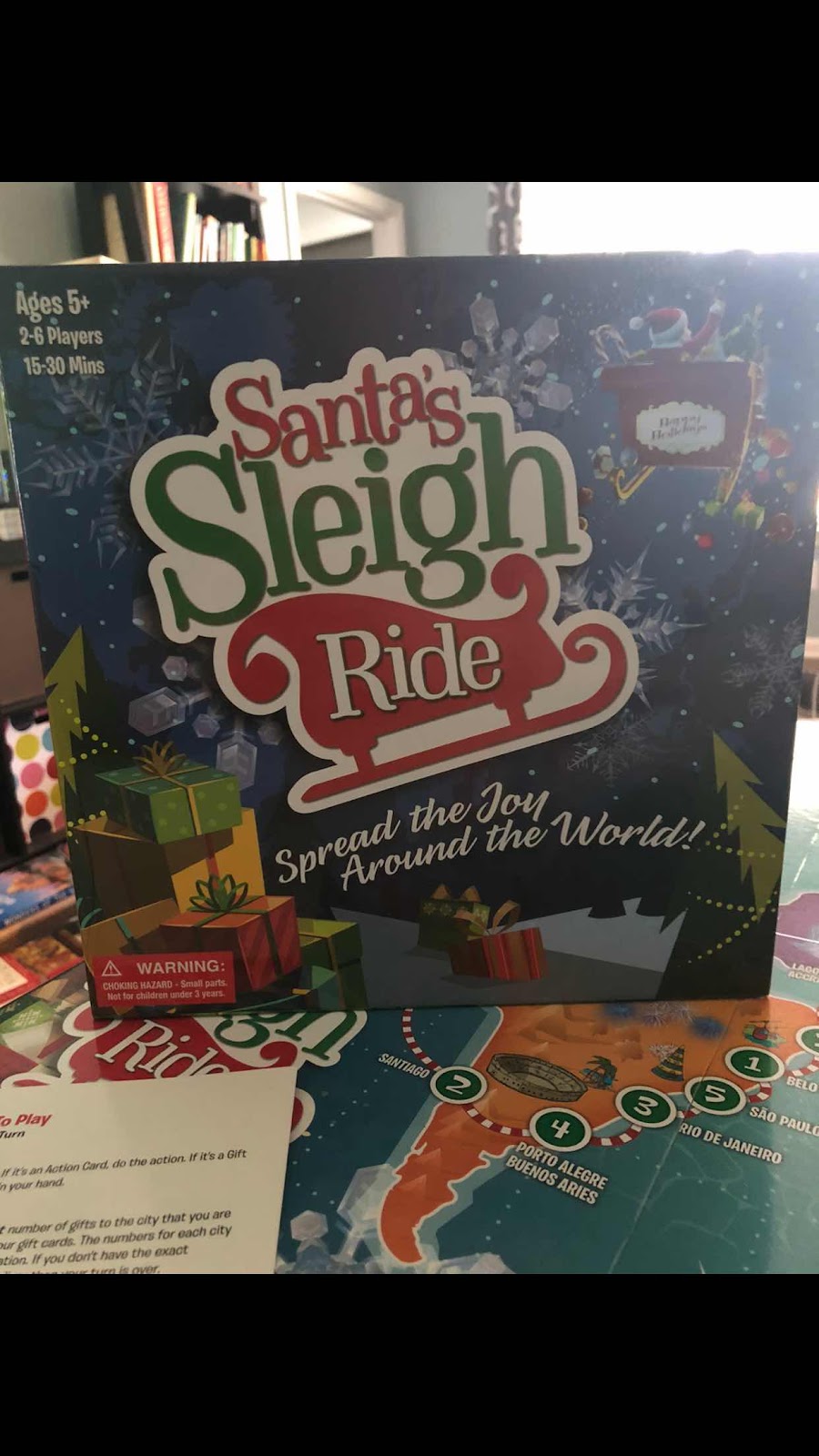 The wonderful folks that created Santa's Sleigh Ride board game were kind enough to send me a copy for review and I'm so glad they did! First, let me give you a little info about my family. We have 3 little ones under 10 years old. We, sadly, haven't played tons of games up until this point. (It's hard to play a game with toddlers running around.) But now that our youngest is finally getting old enough to play games, we've been working on adding more of them into our days. It's really been incredible for our homeschooling and for our family togetherness! It's also been fantastic for getting ALL OF US off of electronics! We love all types of games, but it's hard to find a game that's simple enough for the youngest to play. Enter Santa's Sleigh Ride! Our youngest can play it! - And even win it! There's really no strategy in this game. It's pretty much all luck of the draw. But that's kind of what I was looking for. And even though it's pretty much a game of luck, it's still fun to play! Even mommy and daddy had fun! So let me give you what I think are the pros and cons of the game: